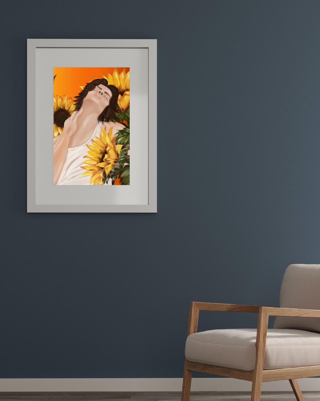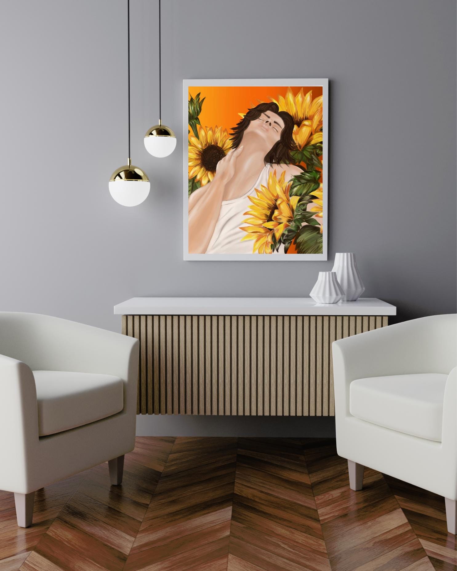Sunflower Soul Portrait – Ethereal Male Illustration – Modern Nature Wall Art – Aesthetic Room Decor – Digital Art Print – Gift for Art Lovers