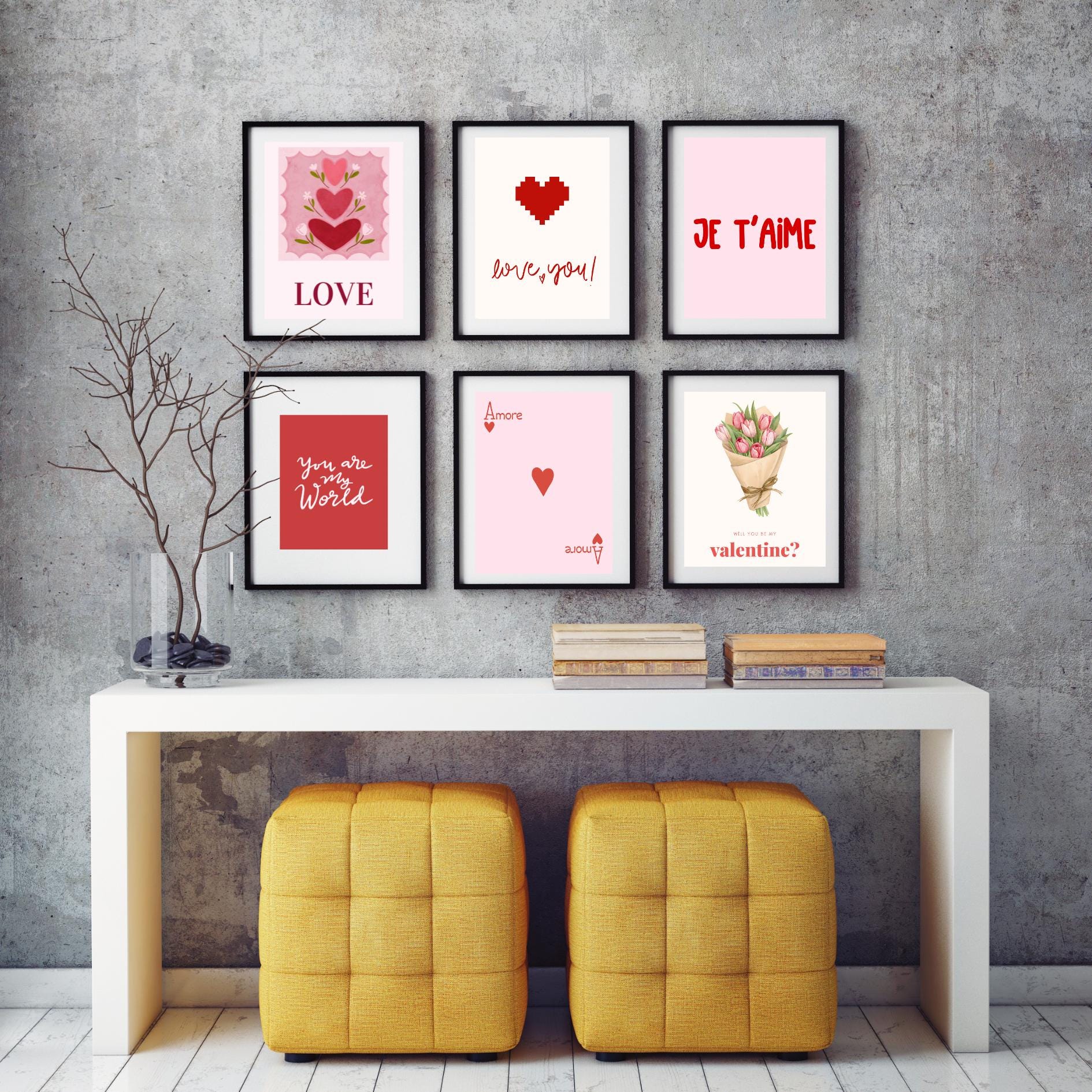 Whether you are decorating for Valentine’s Day, an anniversary, or just want to bring romantic pink and red vibes into your home, this digital download bundle is easy to use, versatile, and instantly accessible. Each poster is high-resolution and ready to print, so you can transform your space into a dreamy, love-filled haven in minutes.