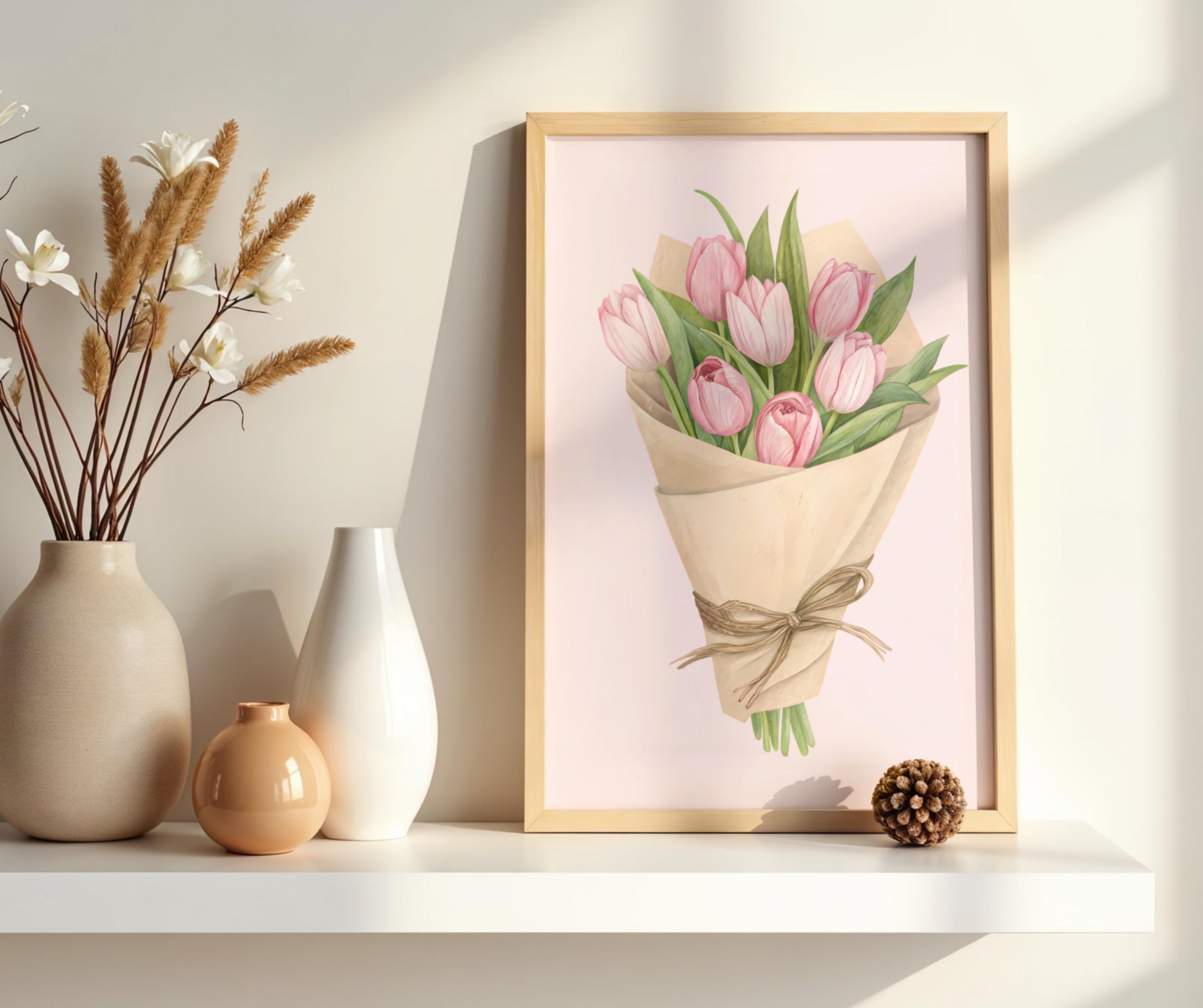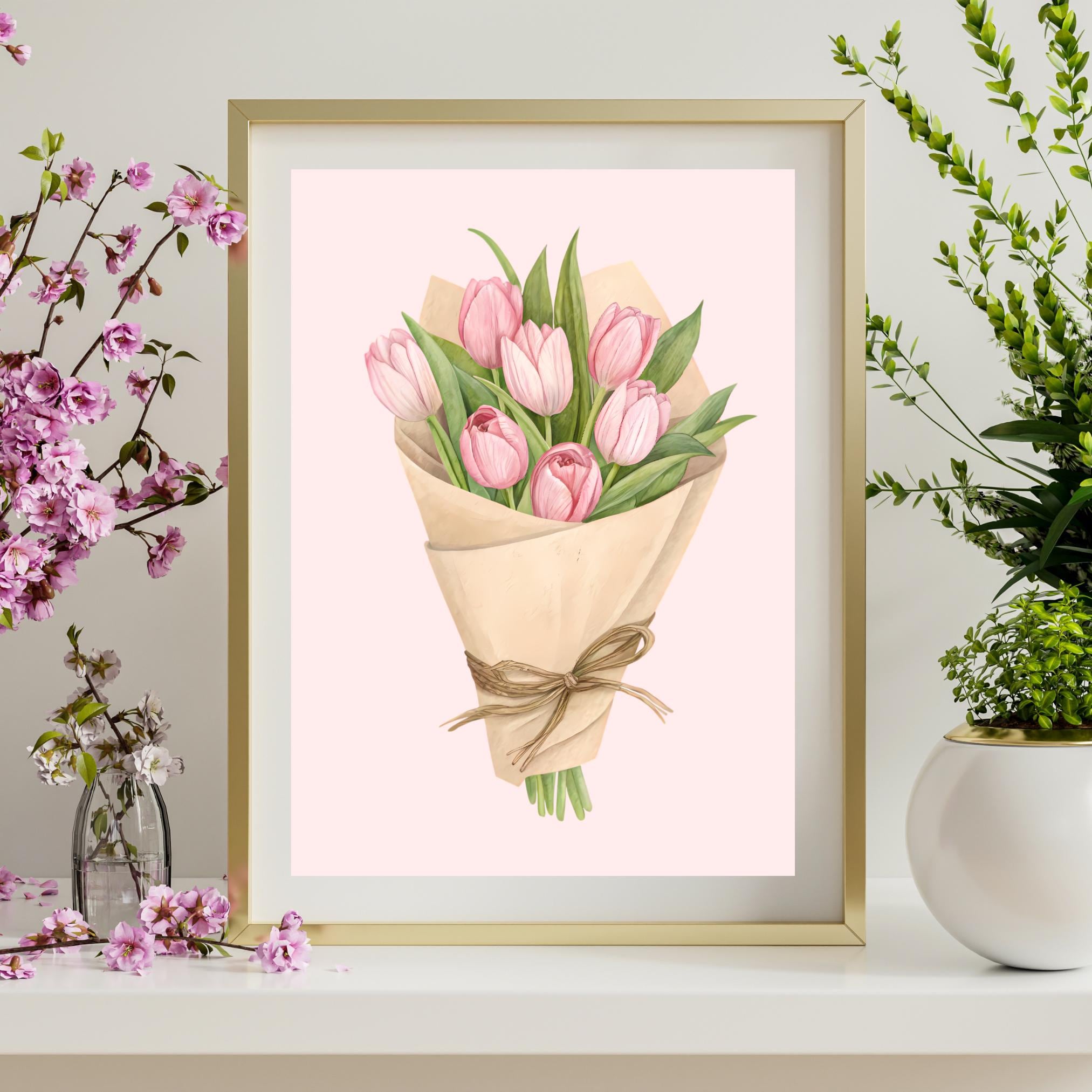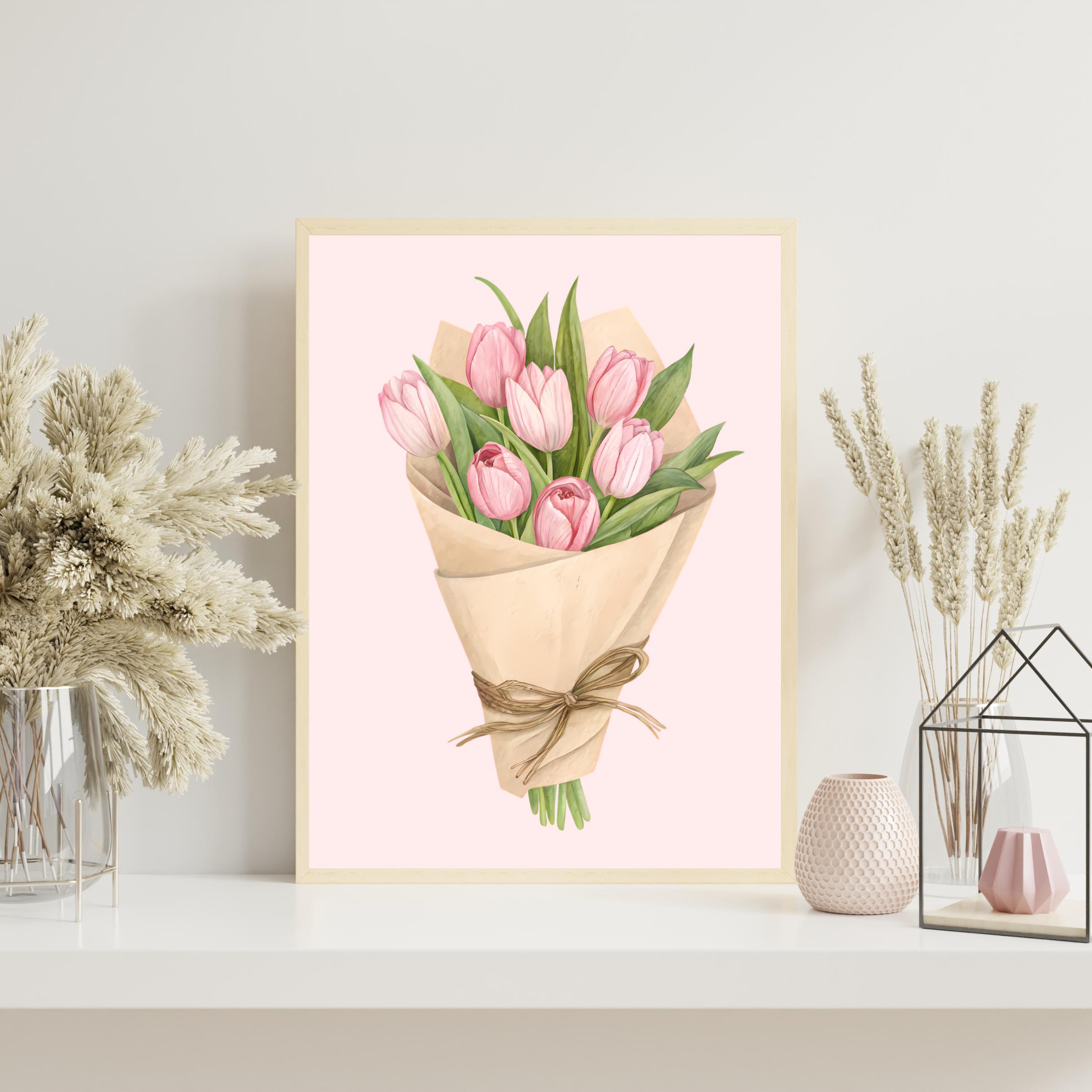 Add a touch of floral elegance to your space with this hand-drawn Pink Tulip Bouquet