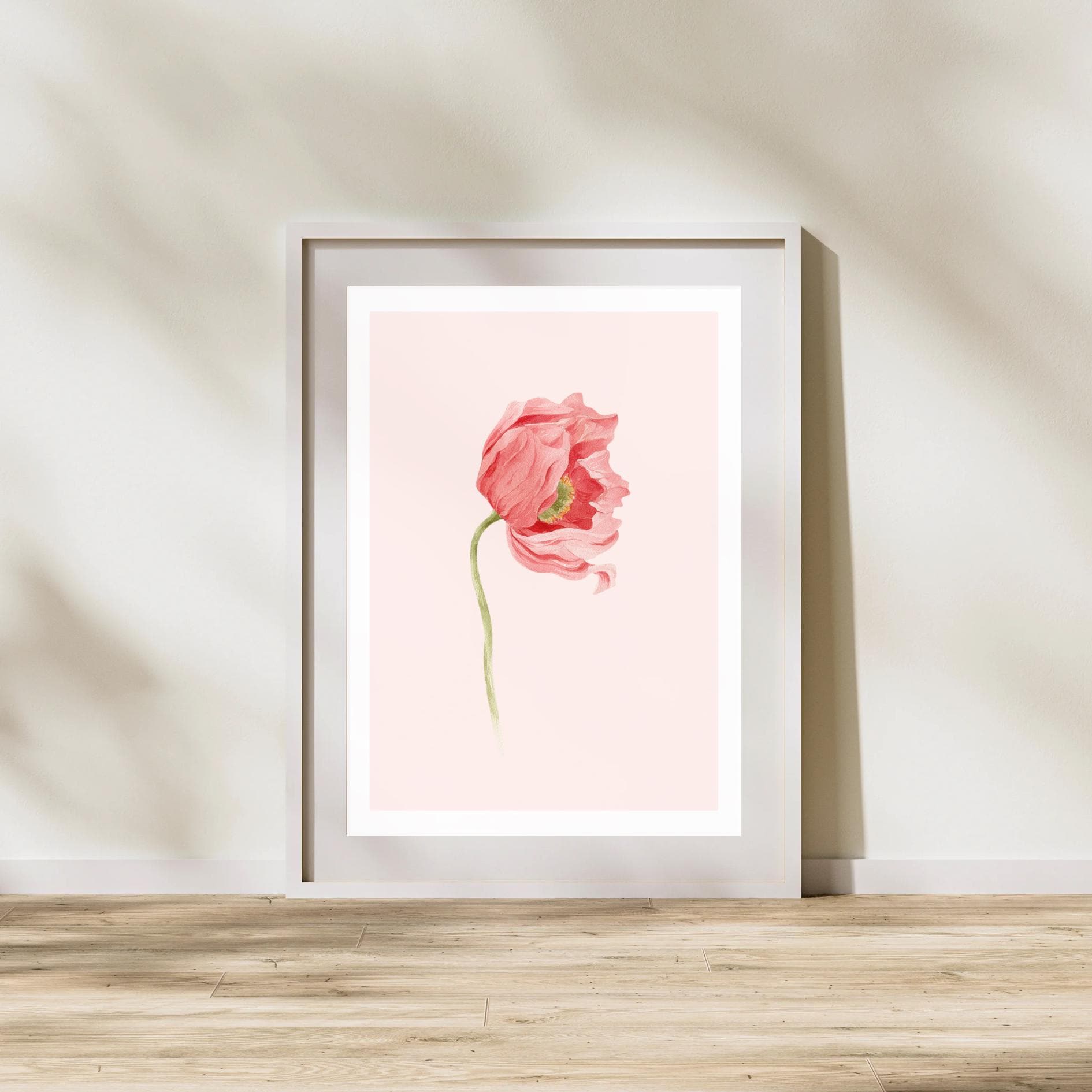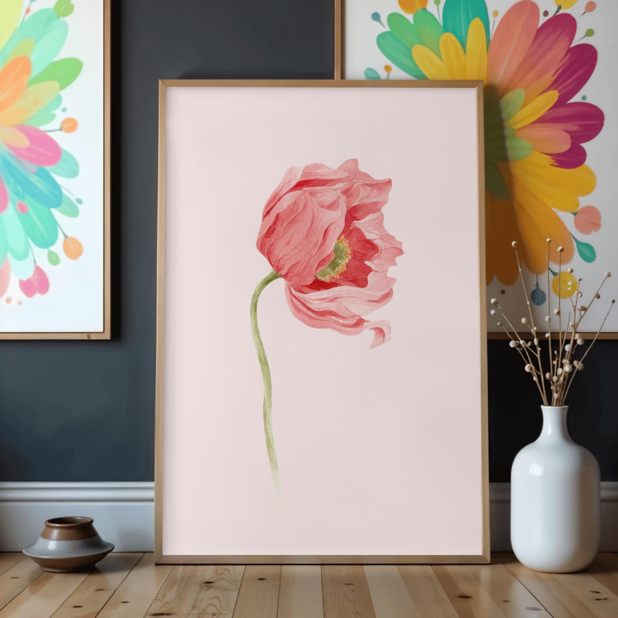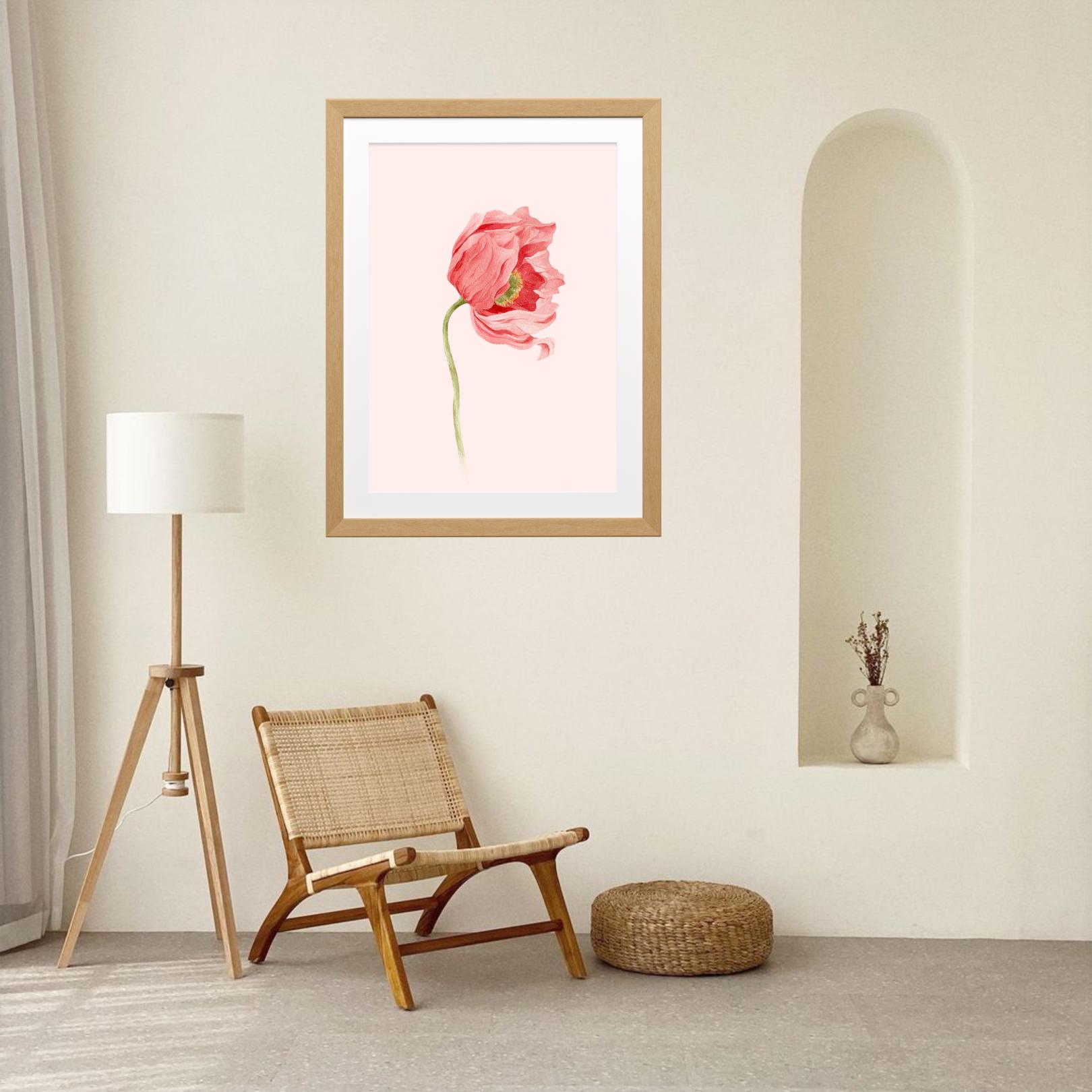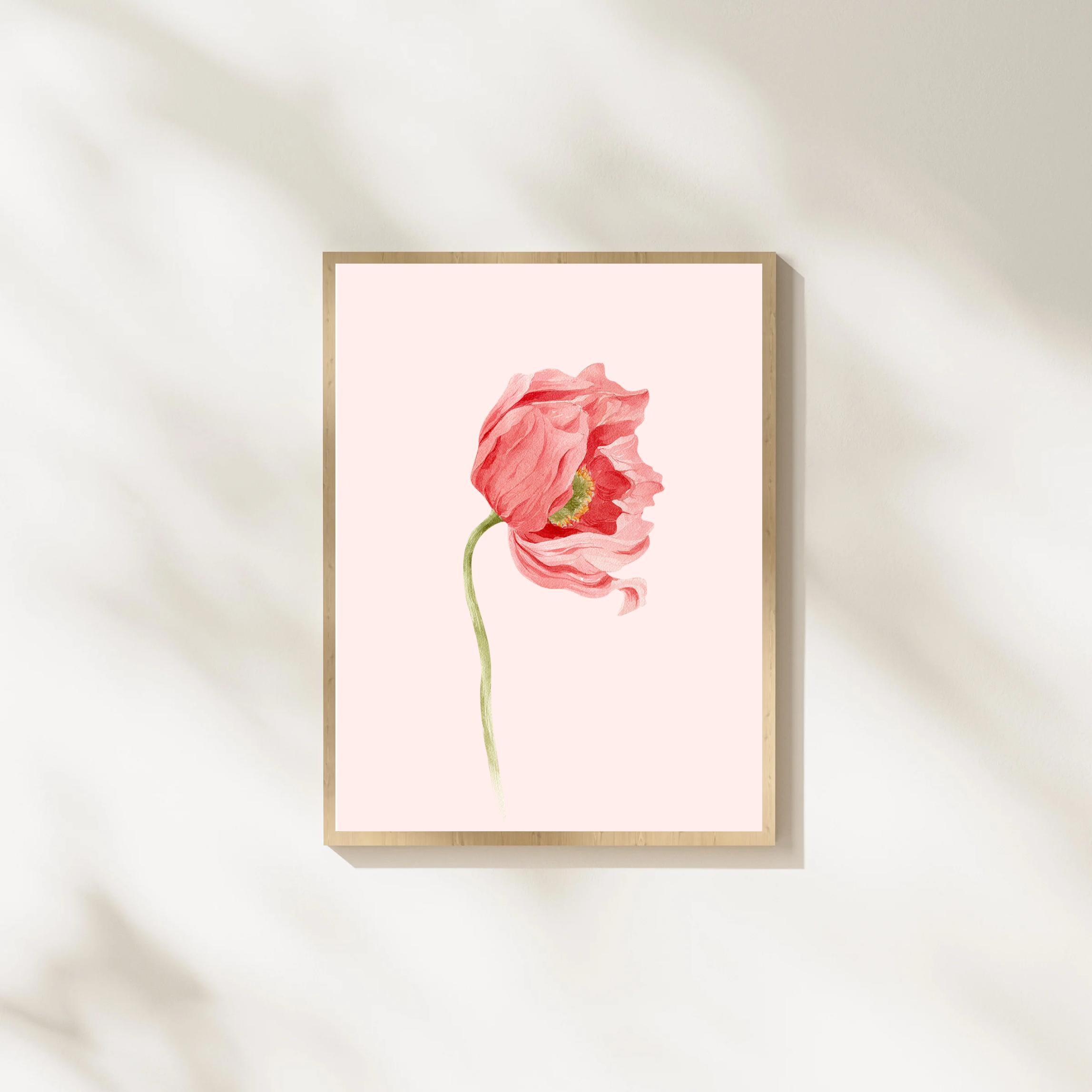 This minimal poppy flower illustration is a refined digital artwork created for calm, modern and timeless interiors.