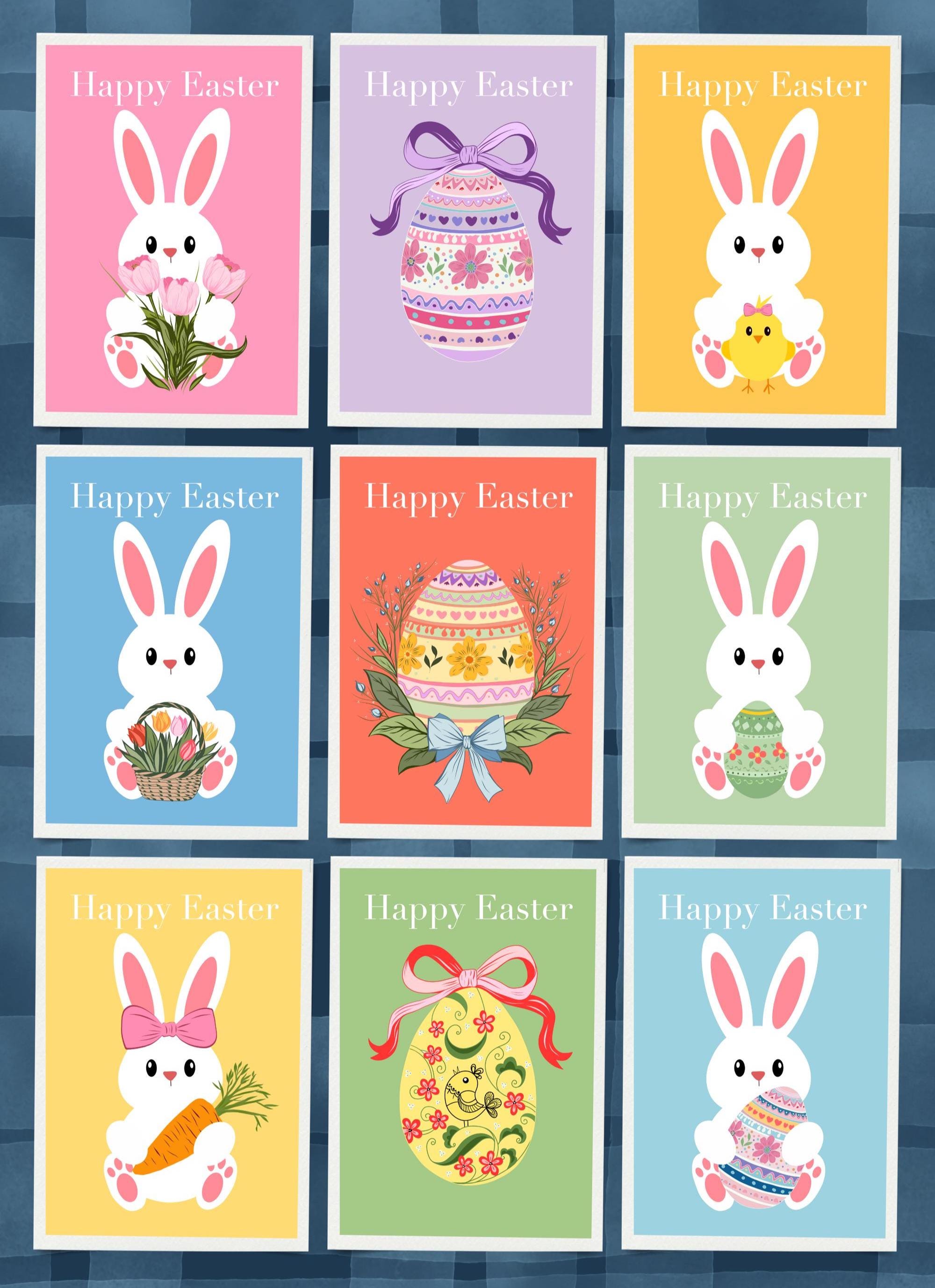 This set is created with a minimalist approach, making it suitable for both children and adults. The pastel color palette and cute egg design bring a light seasonal feeling without being overly decorative. Each card is easy to print and personalize, offering a simple and practical solution for Easter greetings.