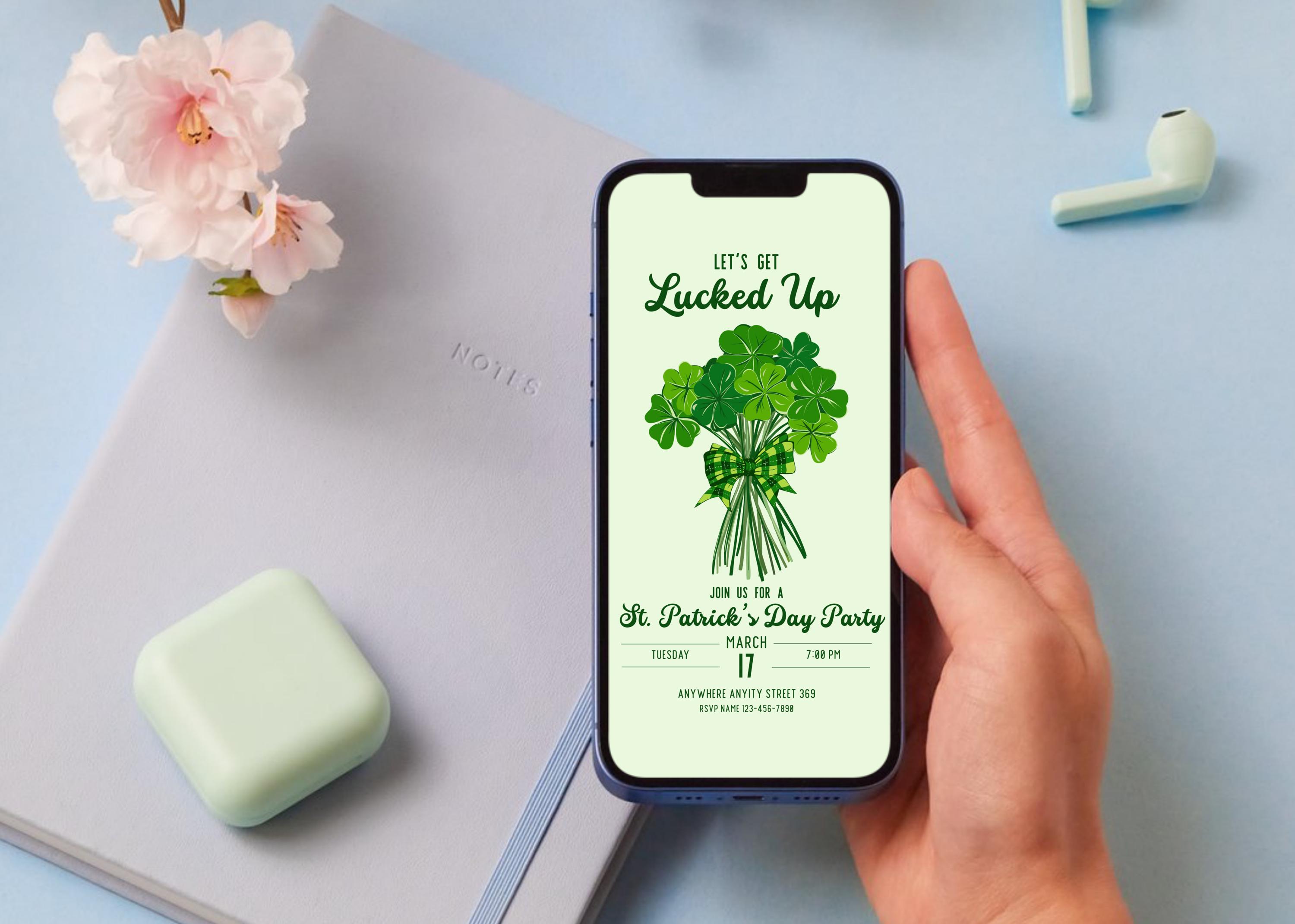 Turn your St. Patrick’s Day gathering into a lucky, shamrock-filled bash with this vibrant editable Canva invitation! Featuring a whimsical bouquet of lush green four-leaf clovers tied with a charming green-plaid bow, bold “Let’s Get Lucked Up” headline, and classic Irish green tones — perfect as a digital e-vite, text invite, or printable poster/afiş for walls, pubs, or home parties
